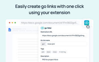 GoLinks هي أداة تعزز الإنتاجية مصممة للفرق لتبسيط مشاركة المعلومات واسترجاعها. هذه الإضافة المستندة إلى الاشتراك لمتصفح Firefox تتيح للمستخدمين إنشاء روابط قصيرة يسهل تذكرها تعرف باسم go/links، مما يلغي الحاجة إلى البحث في العلامات المرجعية. مع GoLinks، يمكن للمستخدمين تحويل عناوين URL الطويلة على الفور إلى روابط مختصرة يسهل مشاركتها والوصول إليها. تتكامل الإضافة بسلاسة في متصفح Firefox، مما يمكّن المستخدمين من إنشاء واستخدام go/links مباشرة من شريط العنوان، مما يسهل سير العمل بشكل أكبر.